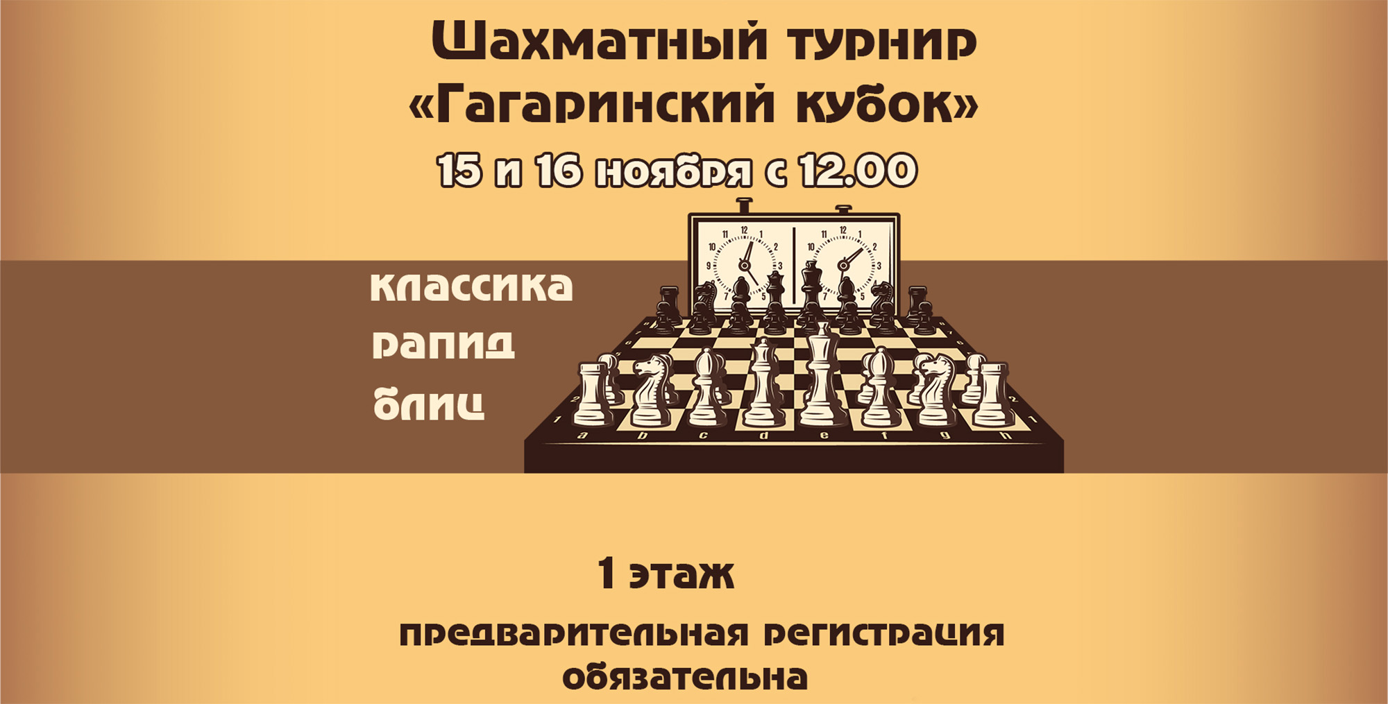 15 и 16 ноября (выходные) в ТРЦ «Гагаринский» состоятся турниры по классическим и быстрым шахматам. В турнирах смогут принять участие игроки различного возраста и с различным уровнем игры.