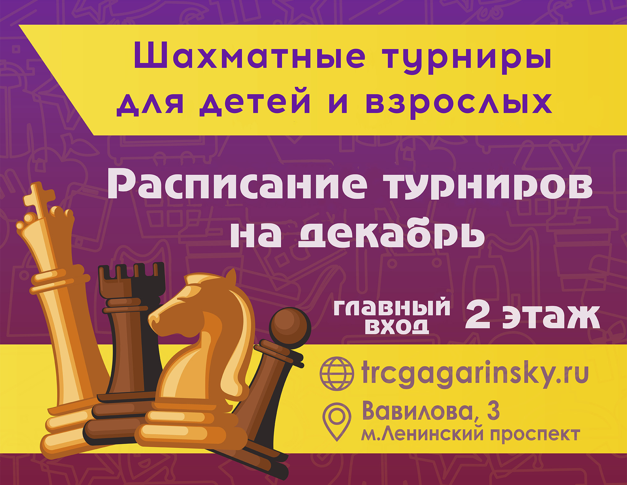 - 14 декабря с 11.00 до 16.00 - турнир по быстрым шахматам для начинающих шахматят.