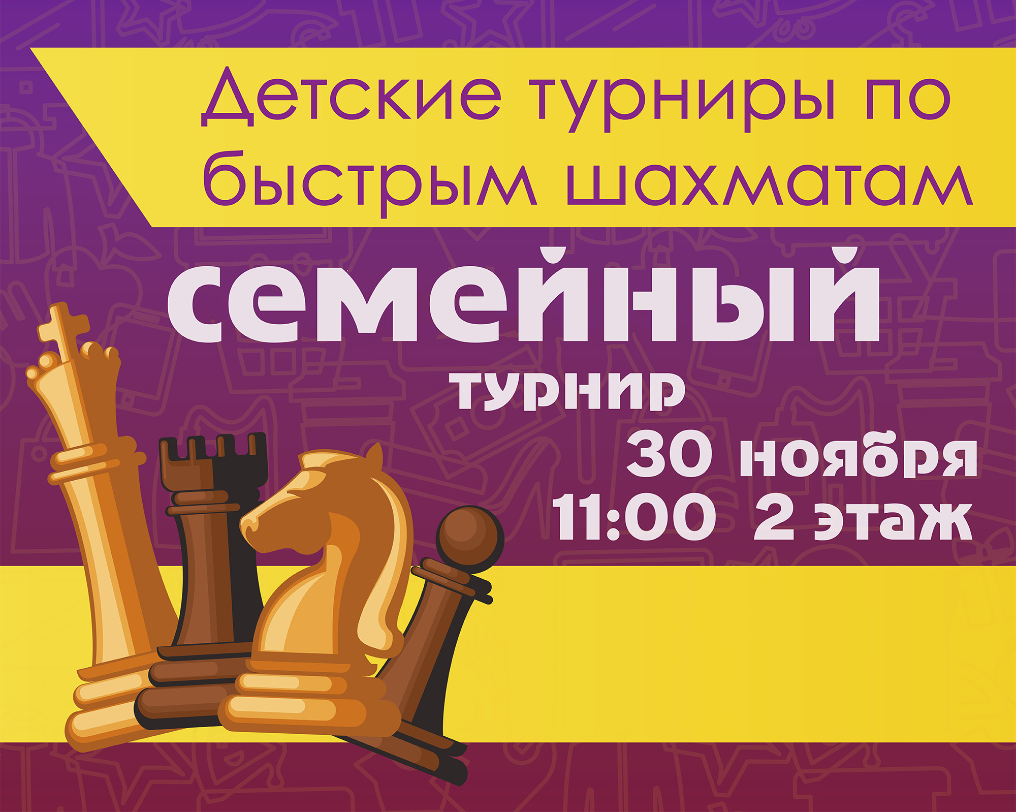 30 ноября приглашаем детей и их родителей принять участие в командно-семейном турнире по шахматам в ТРЦ "Гагаринский".