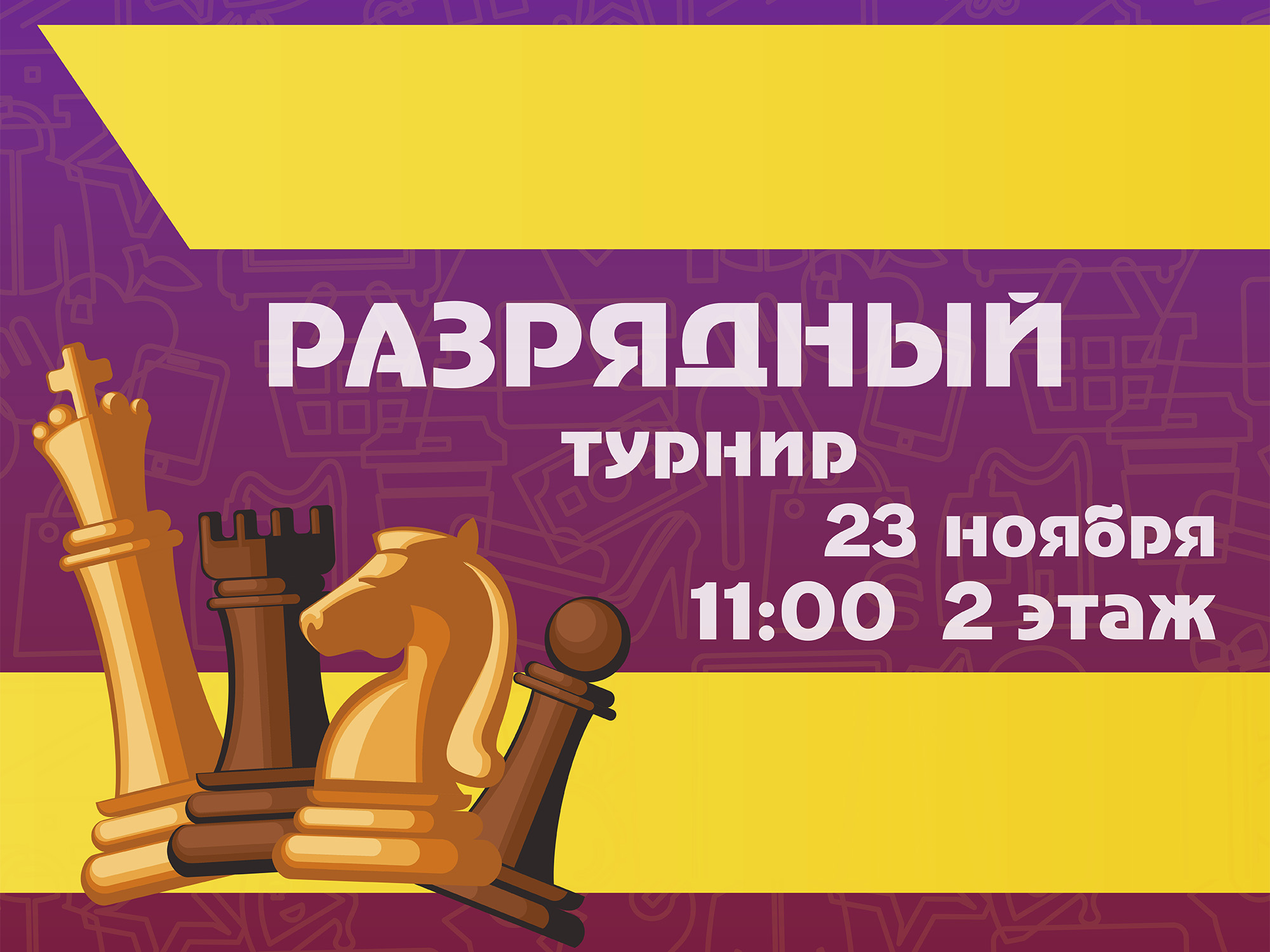 23 ноября команда РШТ приглашает детей и подростков до 18 лет принять участие в разрядном турнире по шахматам в ТРЦ "Гагаринский"!